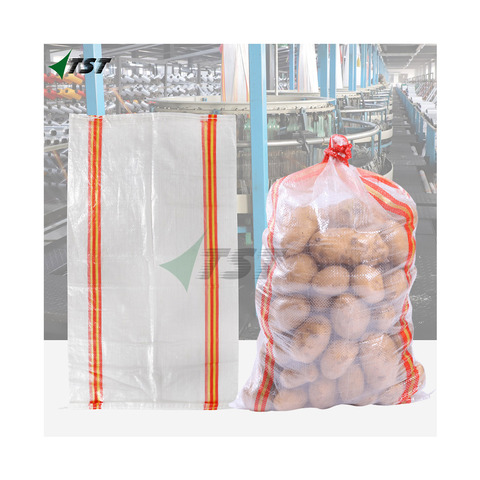 कस्टमाइज्ड ड्रॉस्ट्रिंग 50 किलोग्राम आलू प्याज पैकिंग पीपी लेनो मेष बैग